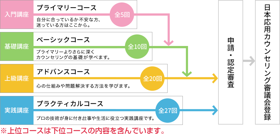 ※プラクティカルコースは日本応用カウンセリング審議会認定審査の実技審査が免除